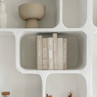 Une fois sec, peindre les livres avec différentes nuances de la couleur souhaitée pour que ça soit plus naturel (pour ça, j’ai utilisé une base blanche dans laquelle j’ai ajouté du beige, et j’en ajoutais davantage pour foncer la couleur à chaque nouvelle tranche)